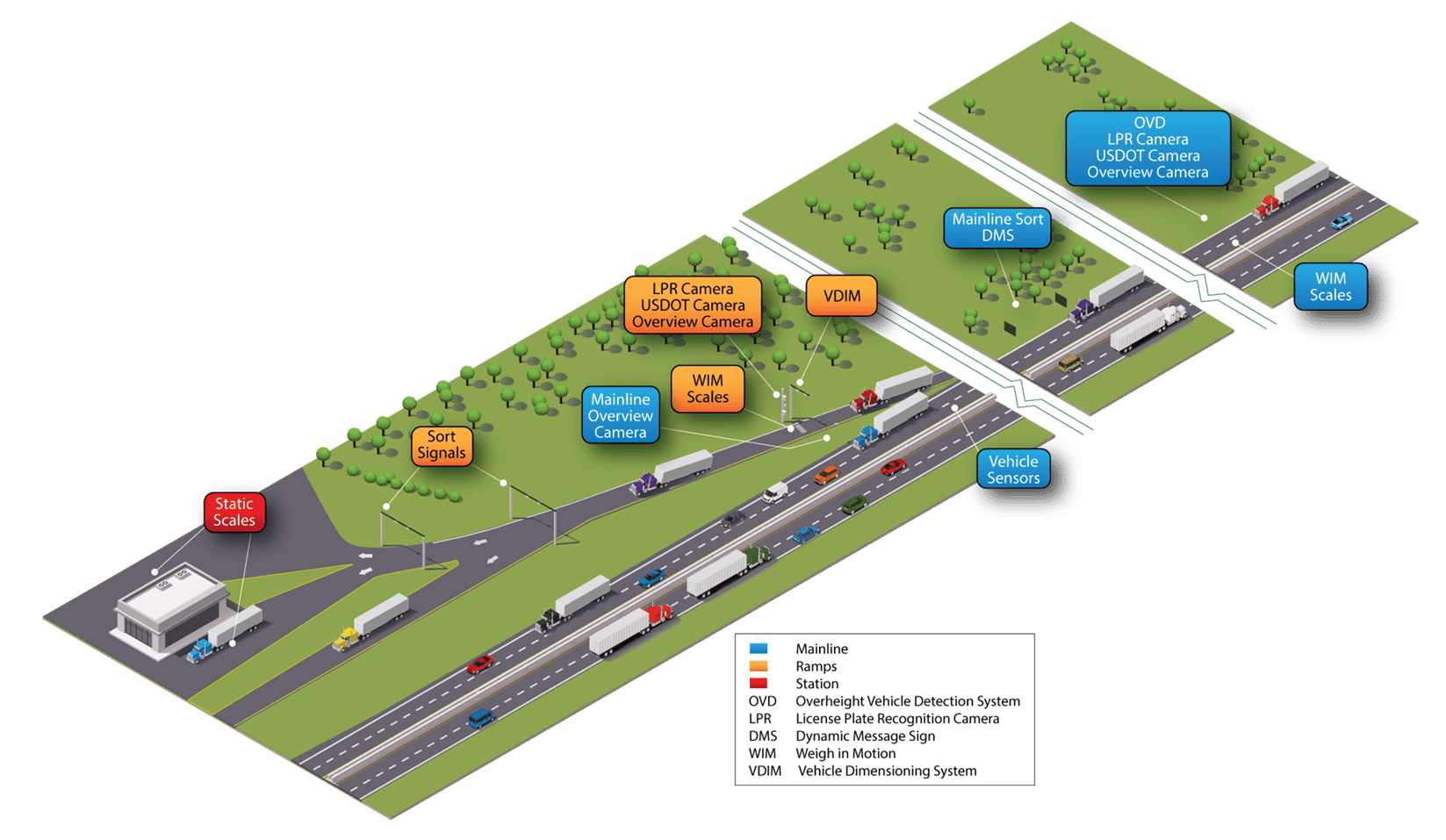 Additionally, reducing the number of trucks entering the weigh stations will minimize the need for trucks to merge back into mainline traffic at mainline speeds after a static weight and inspection. This brings a safer way for trucks to be weighed and inspected without weaving into high-speed traffic.